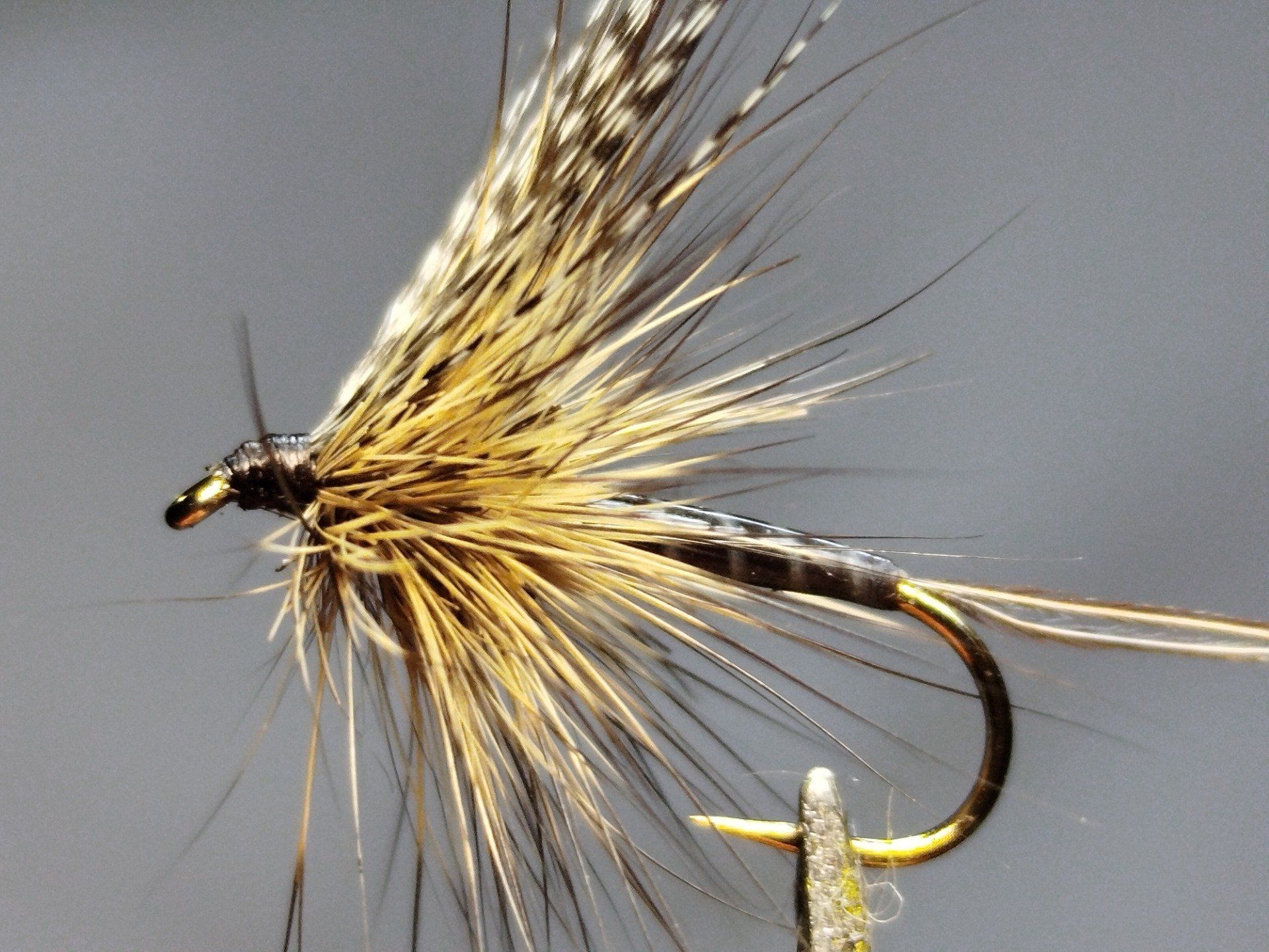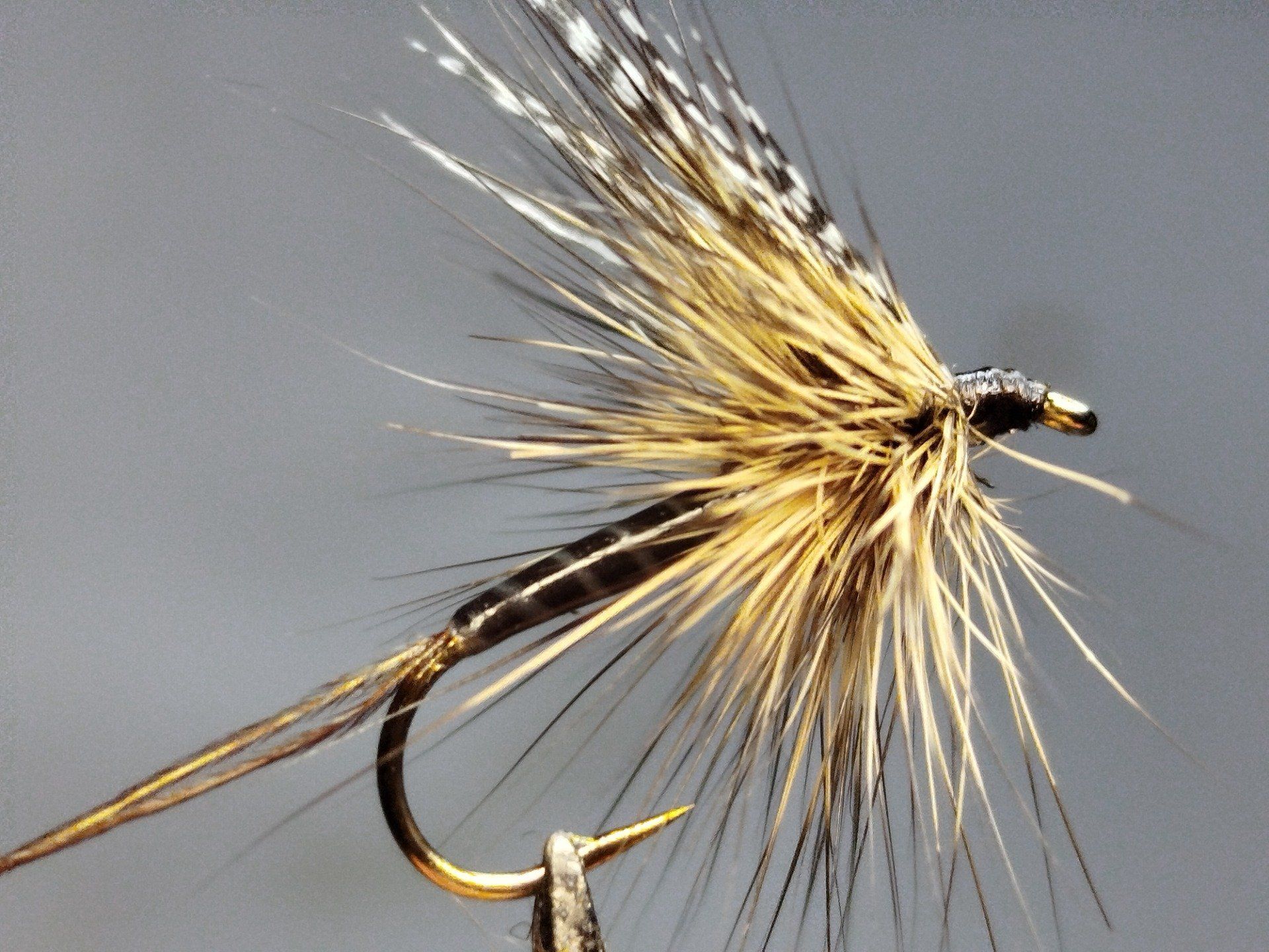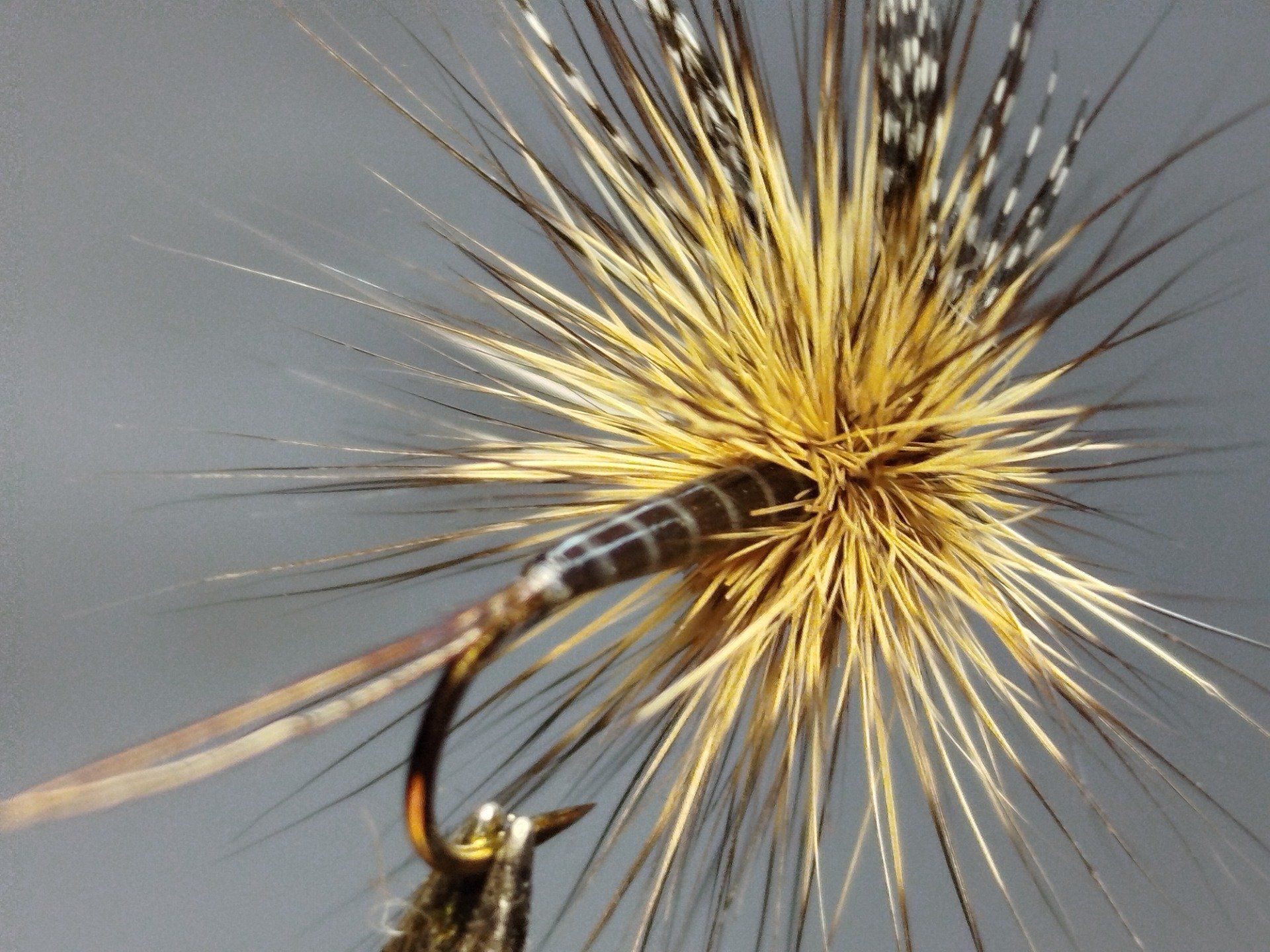 Cerques faisan , corp soie de montage dark brown, cerclage polyfloss beige, résine uv, collerette lièvre, plume flanc de canard