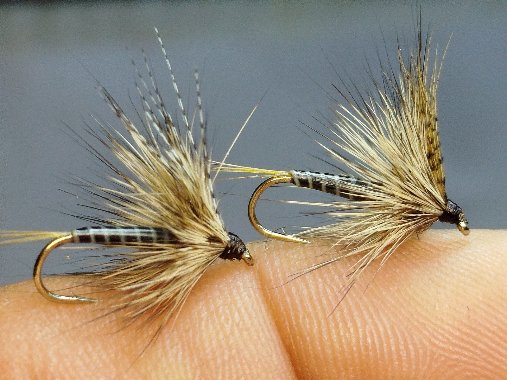 Cerques poils de sanglier, corps foam Brown , cerclage polyfloss beige, collerette lièvre,plume flanc de canard.