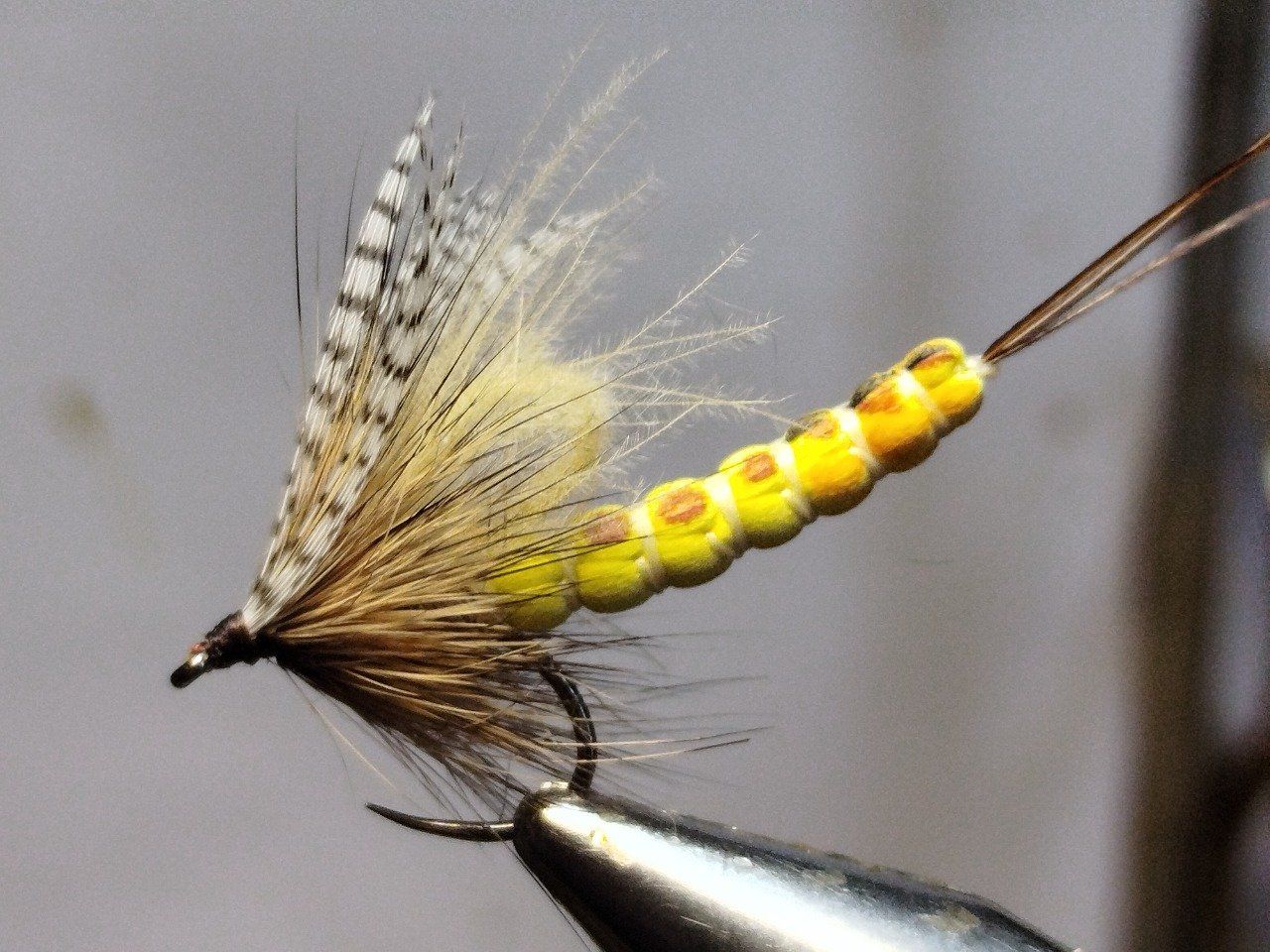 Cerques faisan, corps foam, CDC beige, collerette lièvre, plume flanc de canard