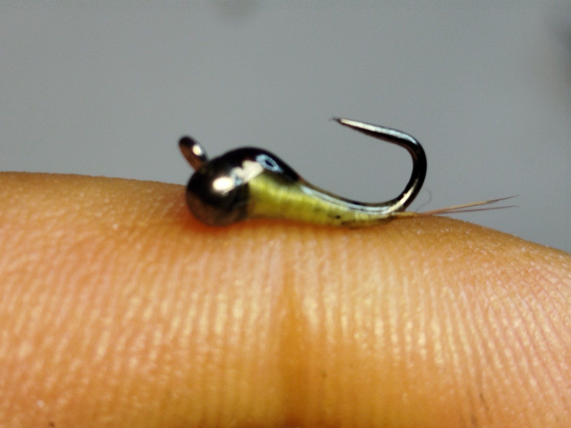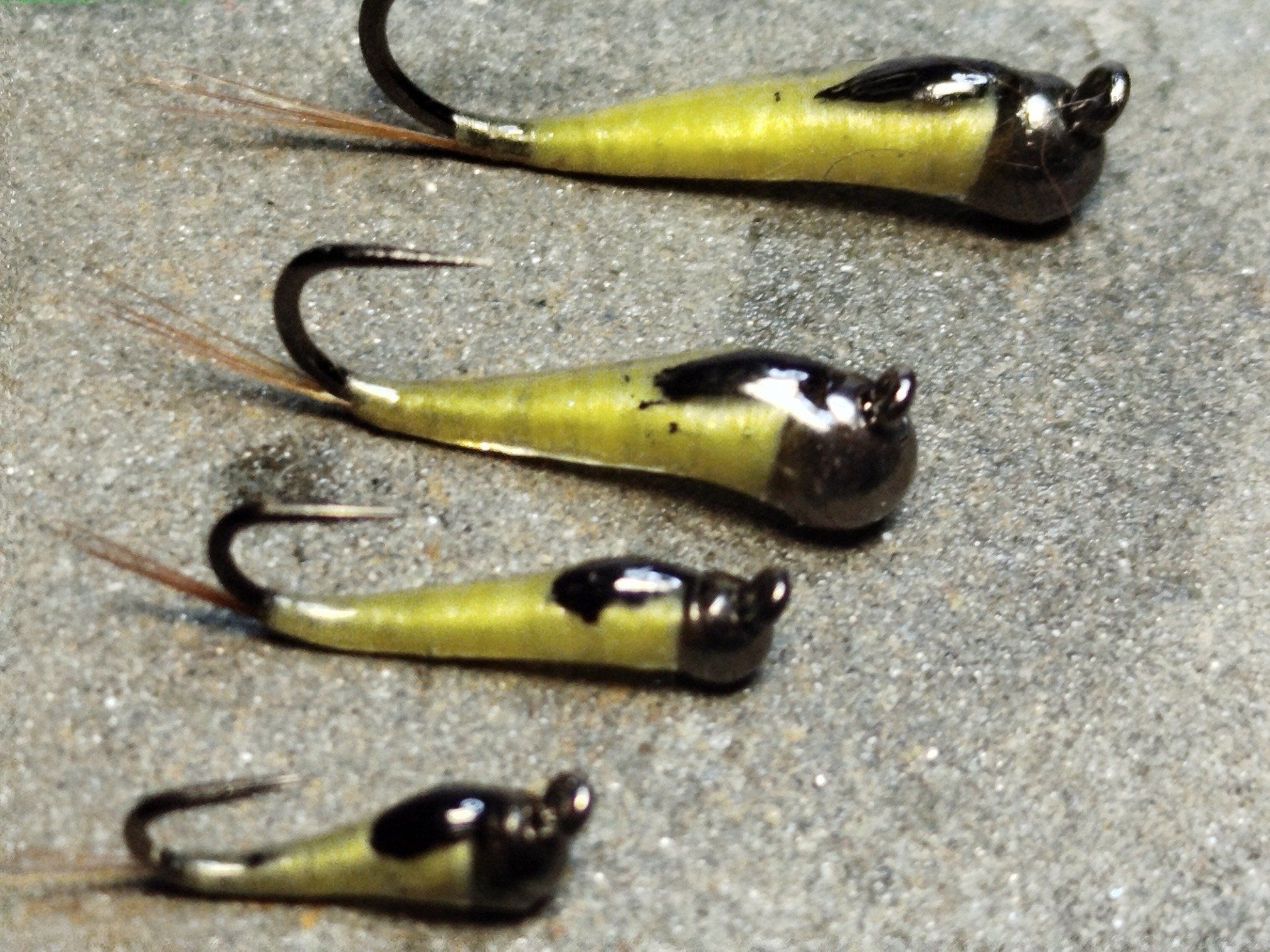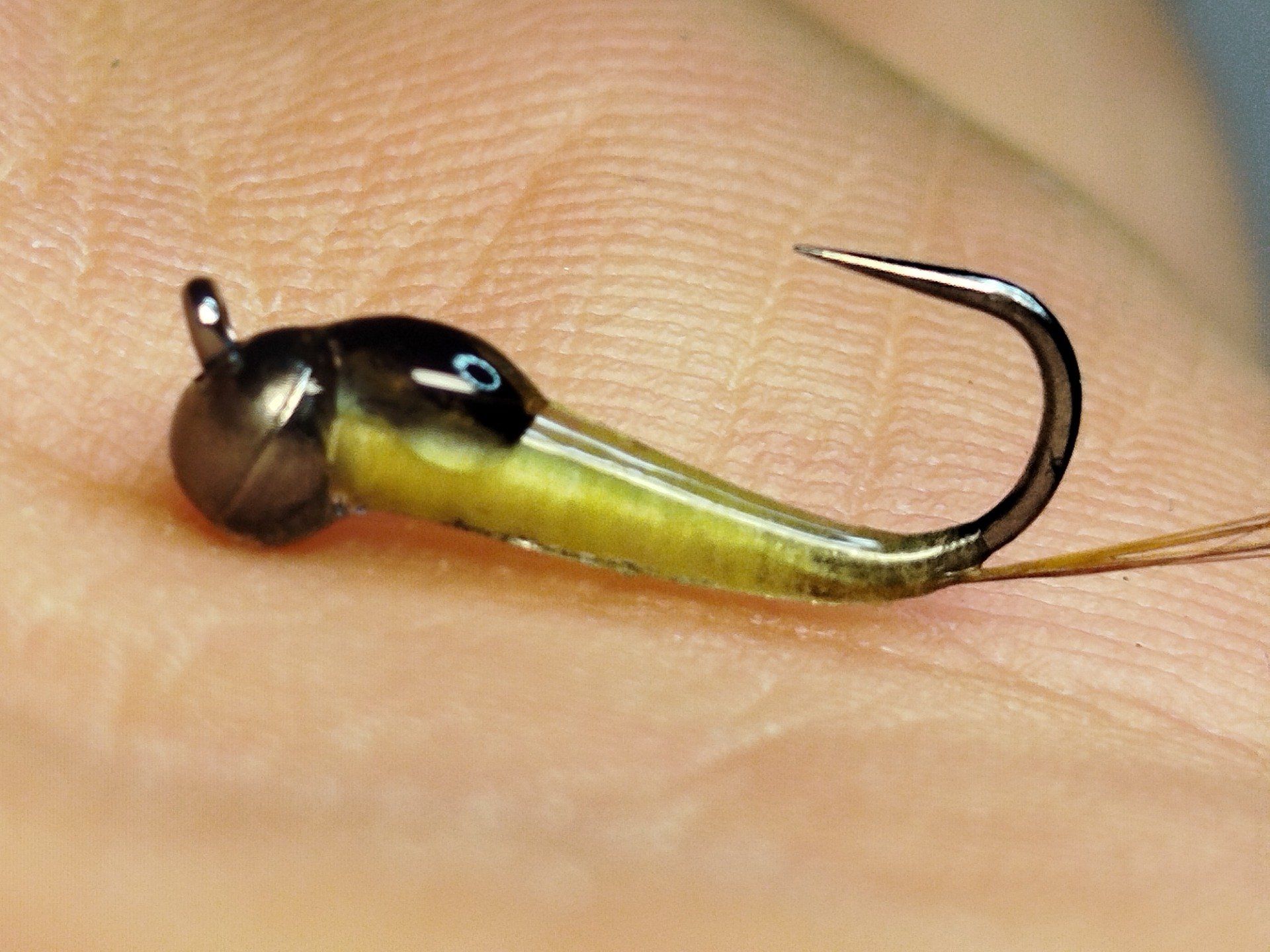 Cerques fin poils de pinceau, corps soie de montage light Cahill, tag noir dessus, tungstène jig off, résine uv