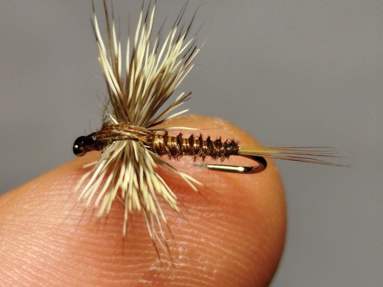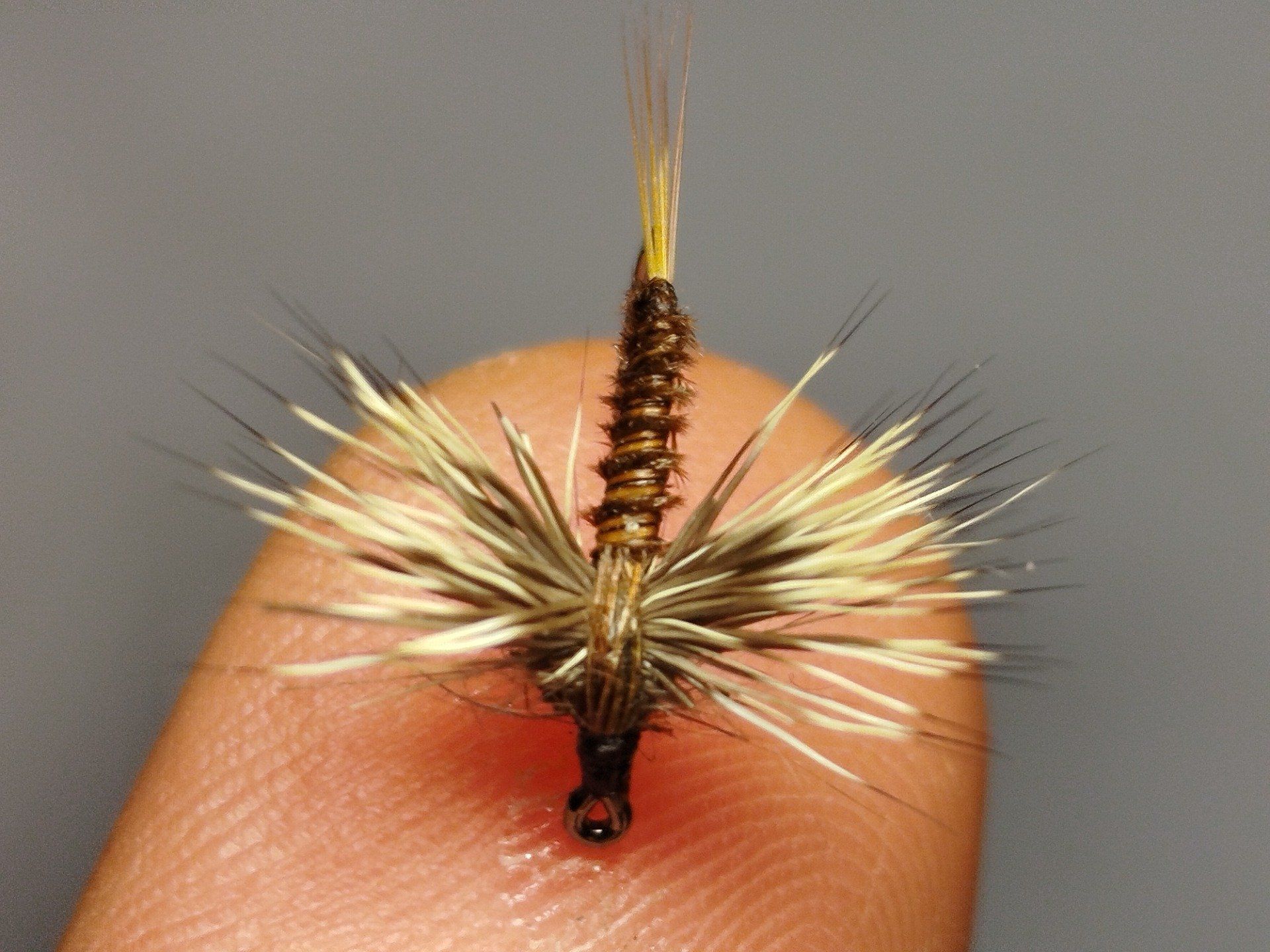 Cerques fin poils de pinceau, corps biot quill brown, thorax dubbing lièvre, faisan, ailes chevreuil couleur naturelle